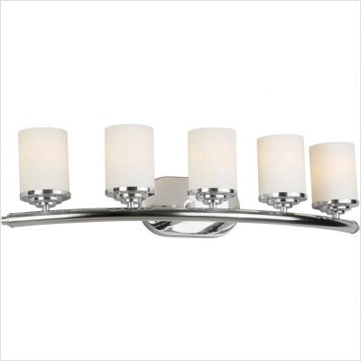 5105-05-05 Finish / Shade: Chrome / Satin Opal Pictured in brushed nickel Features: -Five light vanity light. -Available in chrome, antique bronze or brushed nickel finish. -Chrome finish has satin opal glass shade. -Antique bronze finish has umber linen glass shade. -Brushed nickel finish has satin opal glass shade. Specifications: -Accommodates (5) 100W medium bulb. -Overall dimensions: 7'' H x 29'' W x 7'' D. Read more...
