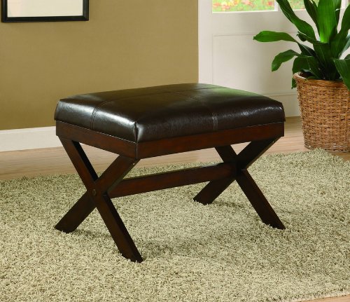 Free Shipping Espresso Vanity Stool Bench Brown Wood Cushion "Bronson" @ Amazon.com